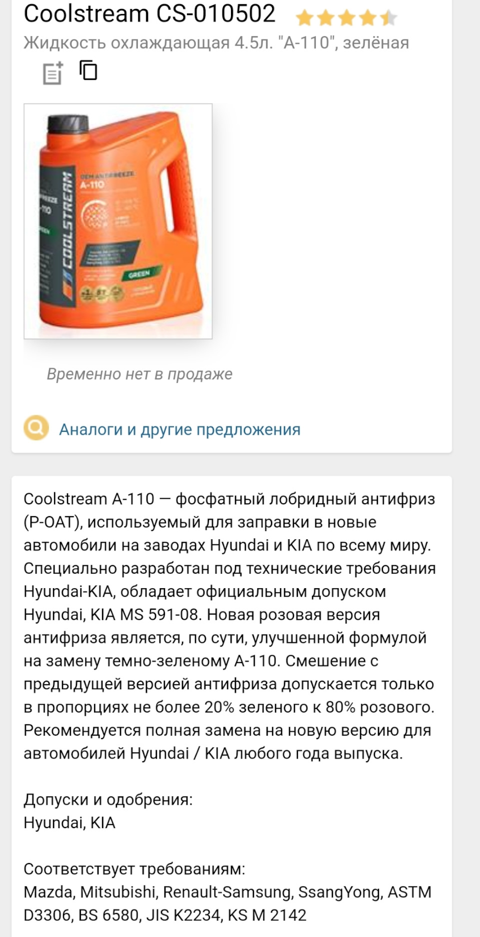 Заменил антифриз. Выбор остановился на Coolstream A-110.