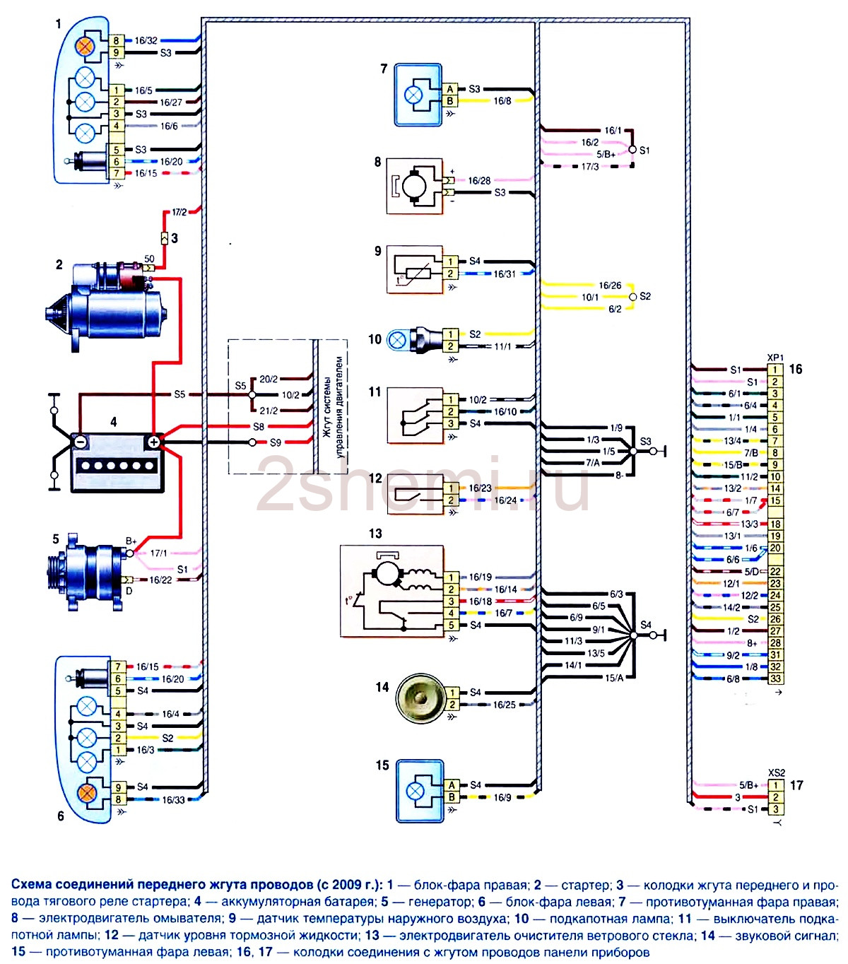 Схема соединений переднего жгута проводов на Chevrolet Niva ВАЗ-2123 выпуска с 2009 года