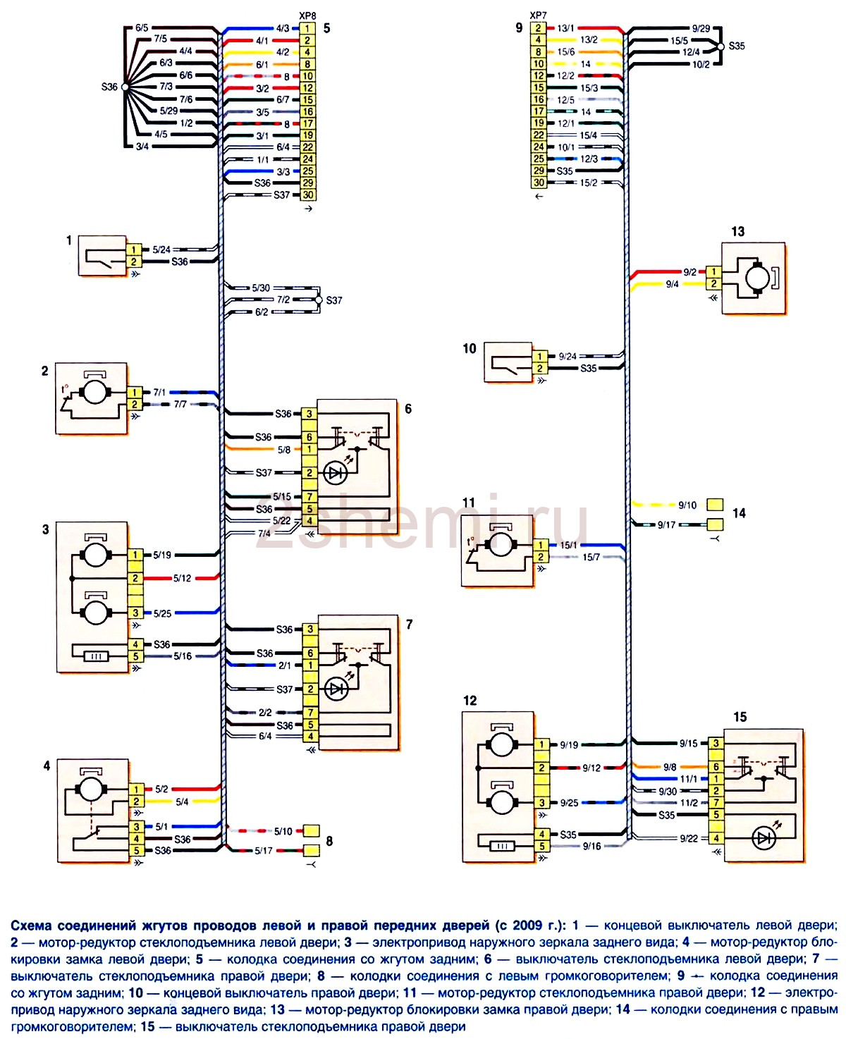 Схема соединений жгутов проводов левой и правой задних дверей ВАЗ-2123 с 2009 года выпуска