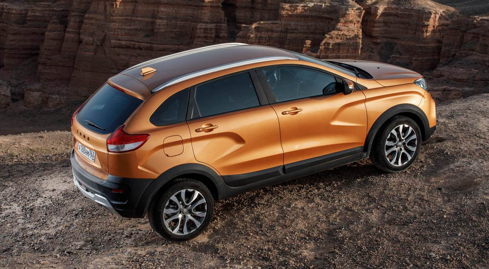 По сути, Lada Xray Cross опоясывает по всему периметру как бы «юбка», сделанная из черного пластика. Смотрится все это довольно стильно и изящно. Немаловажным элементом X-дизайна также являются большие 17-дюймовые диски. Они не только делают внешний вид машины более уверенным и мощным, но и вносят свою лепту в увеличение дорожного просвета.