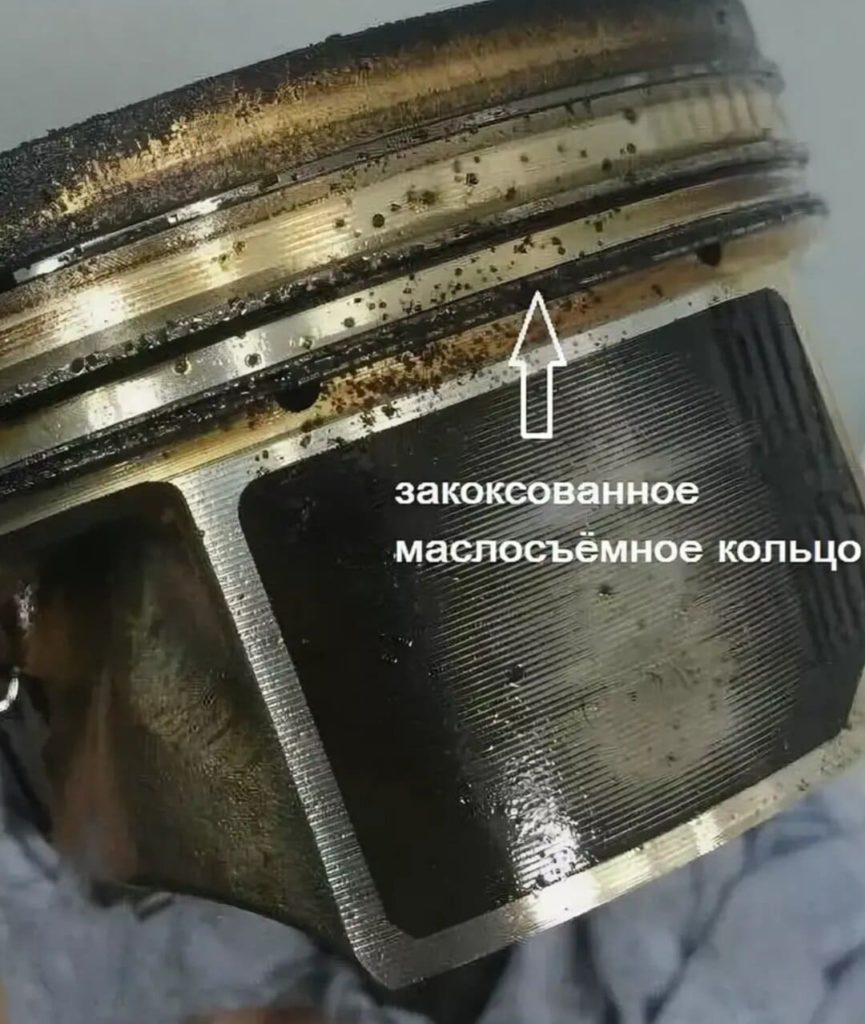 Такая неисправность чаще всего возникает из-за нерегулярной замены моторного масла. При большом пробеге оно окисляется и загрязняется шламом, который постепенно оседает на поршнях и скапливается в канавках, где закреплены кольца. При их частичном залегании начинается лавинообразный процесс: через образовавшиеся зазоры в камеру сгорания попадает еще больше масла, вследствие чего оно сгорает и образует коксовый налет, что усугубляет ситуацию и приводит к тому, что кольца окончательно теряют подвижность из-за обильного образования сторонних отложений.
