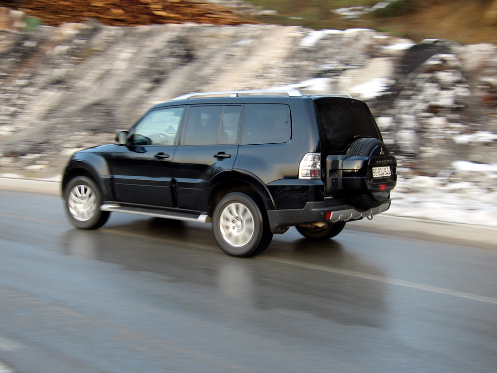 Теперь – о самом интересном, ходовых характеристиках Pajero. Машина уверенно чувствует себя на всех поверхностях. Город, трасса и бездорожье покоряются Mitsubishi Pajero благодаря грамотно реализованному полному приводу, хорошей подвеске и мощному движку.