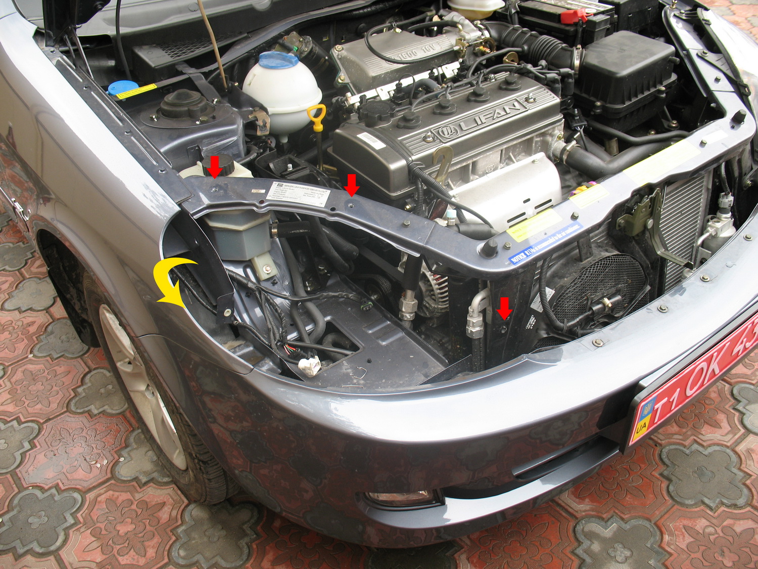 Первым делом демонтируем декоративную решётку радиатора, что позволит нам добраться до крепёжного механизма. После этого, необходимо снять внутреннюю часть панели переднего крыла с той стороны, с которой должна быть снята фара. Далее наступает черёд переднего бампера, который, также, нуждается в демонтаже.