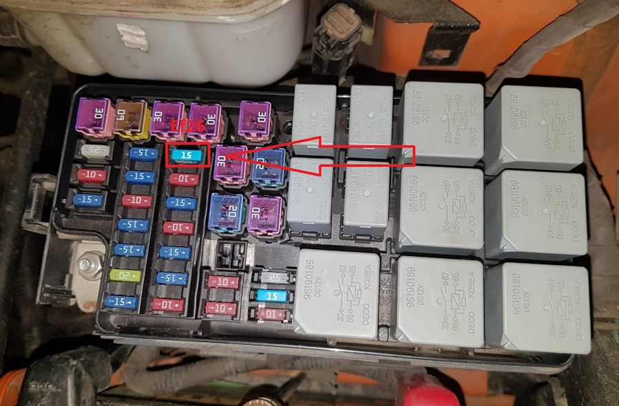 Предохранитель центрального замка EF26 на Chevrolet Lacetti