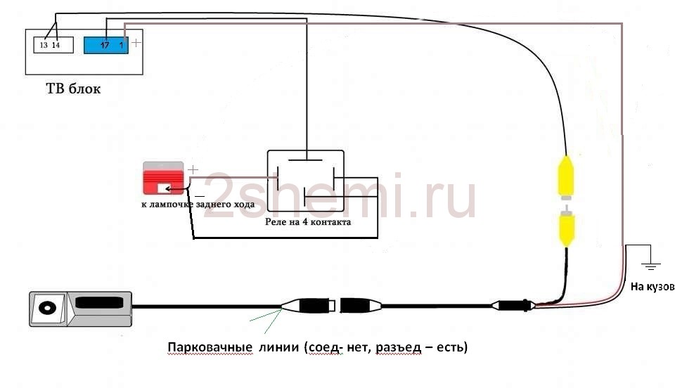Схемы подключения камеры заднего вида к автомагнитоле и монитору