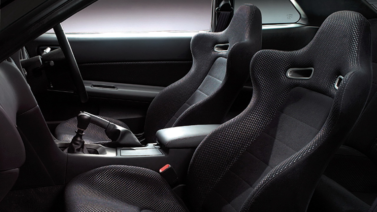 Если говорить о внутреннем убранстве, то базовый вариант Скайлайна, из-за использования простой темной обивки и жестковатого пластика в отделке салона, отличался скромностью и даже некоторым аскетизмом. Более поздние модификации, включая M-Spec и другие версии, получили кожаный салон и множество дополнительных опций, в том числе панель приборов Nismo, а также руль Sparco Champion Limited Edition с механизмом быстрого съема и т.д.