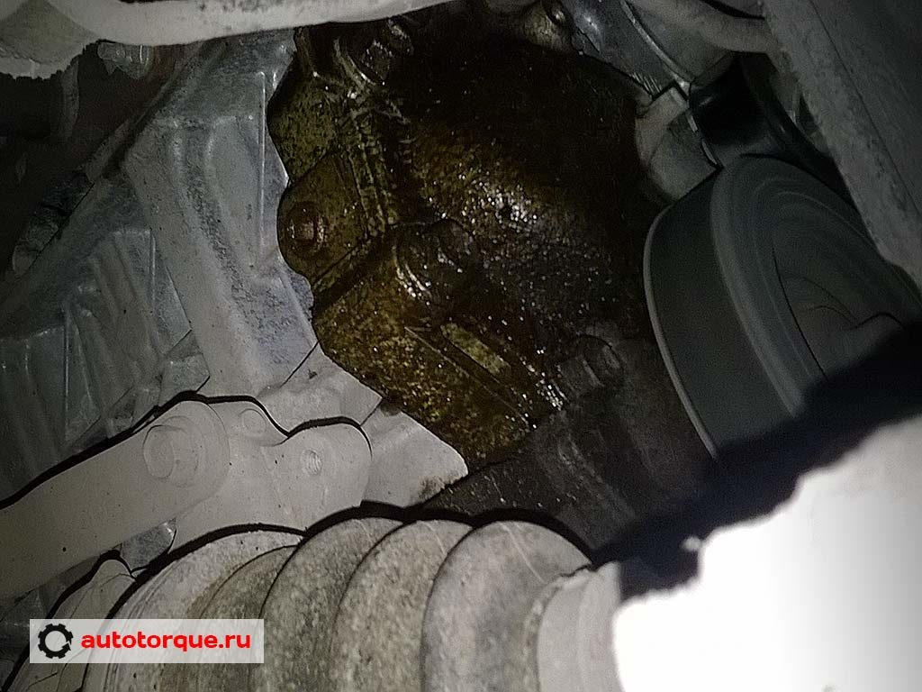 Течь передней крышки двигателя можно увидеть через арку колеса