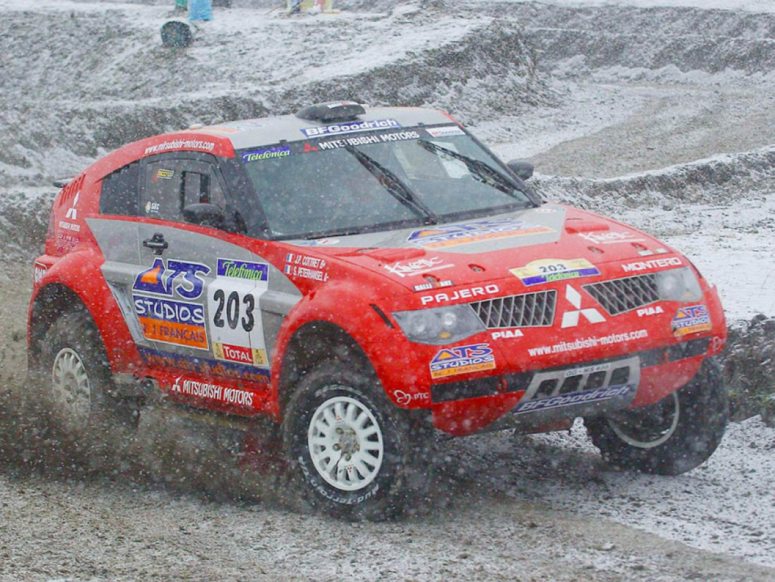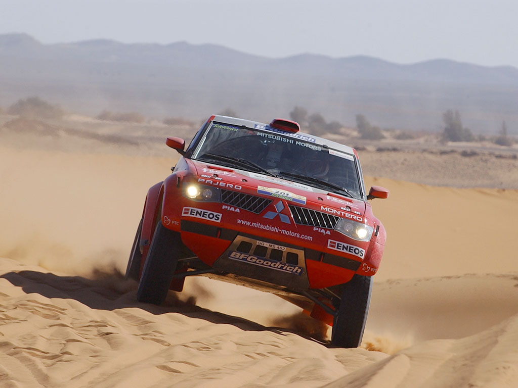 The Mitsubishi Pajero/Montero Evolution made its competitive debut in the 2002 UAE Desert Challenge, winning out of the box in the hands of StÃphane Peterhansel. It then went on to win the 2003 Dakar Rally at its first attempt, Japans Hiroshi Masuoka taking honors for the team. Since then, the FIA Super Production car has been fitted with a new four liter engine and has undergone further development and, in the teams last competitive outing and shakedown test for the Dakar, Stephane Peterhansel once again guided the Pajero/Montero Evolution to victory in the 2003 UAE Desert Challenge.