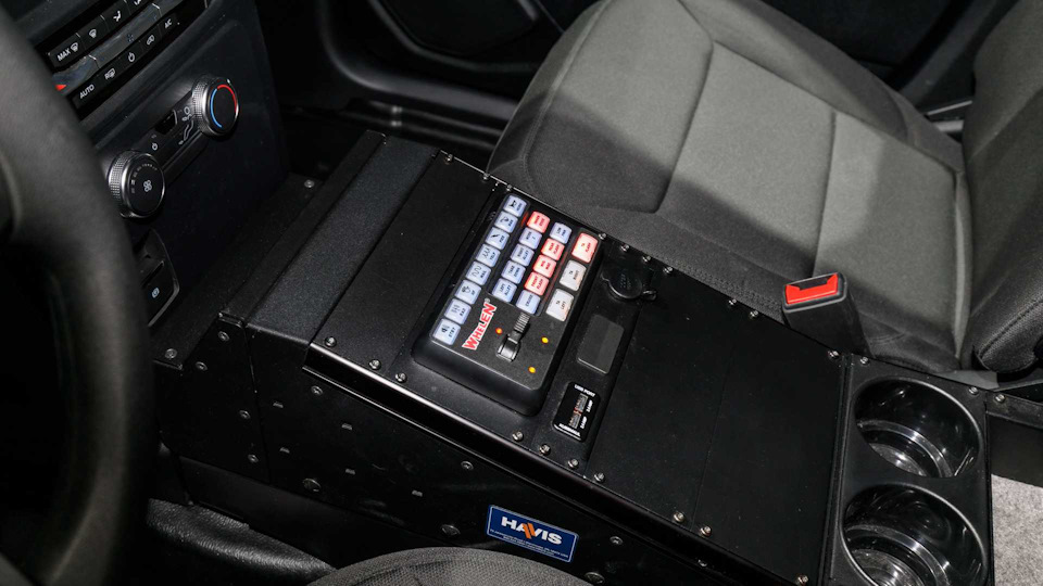 Данный автомобиль с завода уже базе укомплектован стробоскопами, передними сидениями из устойчивой к износу ткани, между которыми оставлен 11-дюймовый подиум под установки специального оборудования: держателя для ноутбука или планшета, блока управления спец сигналами, фиксатора для дополнительного оружия.