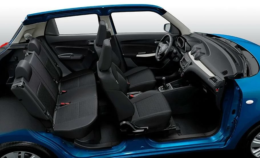 Окно по всему периметру автомобиля придает верхней части корпуса нового Swift спортивный вид и помогает наделить салон ощущением надежности. Такой дизайн дополняется черной отделкой центральной и передней стоек.