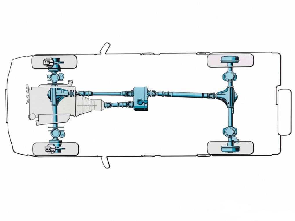 Раздаточные коробки практически не вызывают нареканий. А вот передний мост требует повышенного внимания. Нужно осмотреть его на предмет механических повреждений, особенно, если автомобиль эксплуатировался на бездорожье. То же самое следует делать в отношении крестовин.