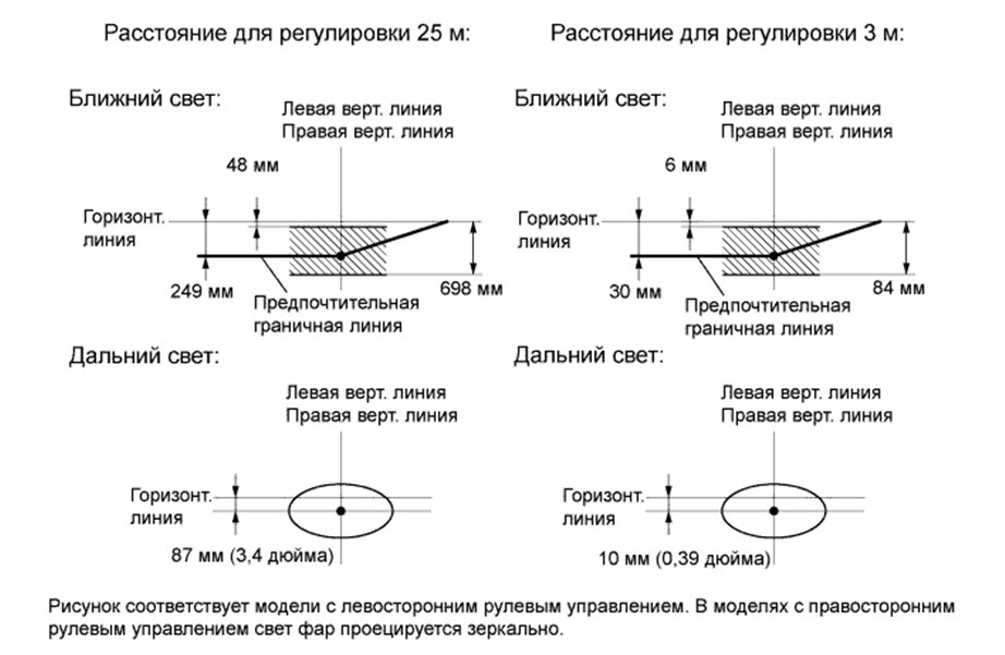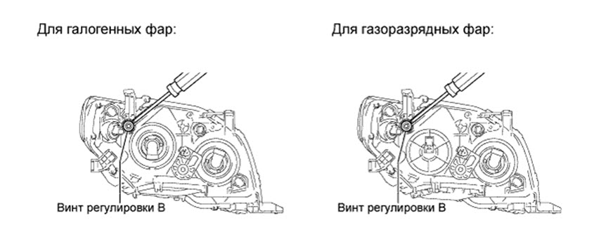 - Необходимо регулировать фары по очереди, начиная с правой фары.