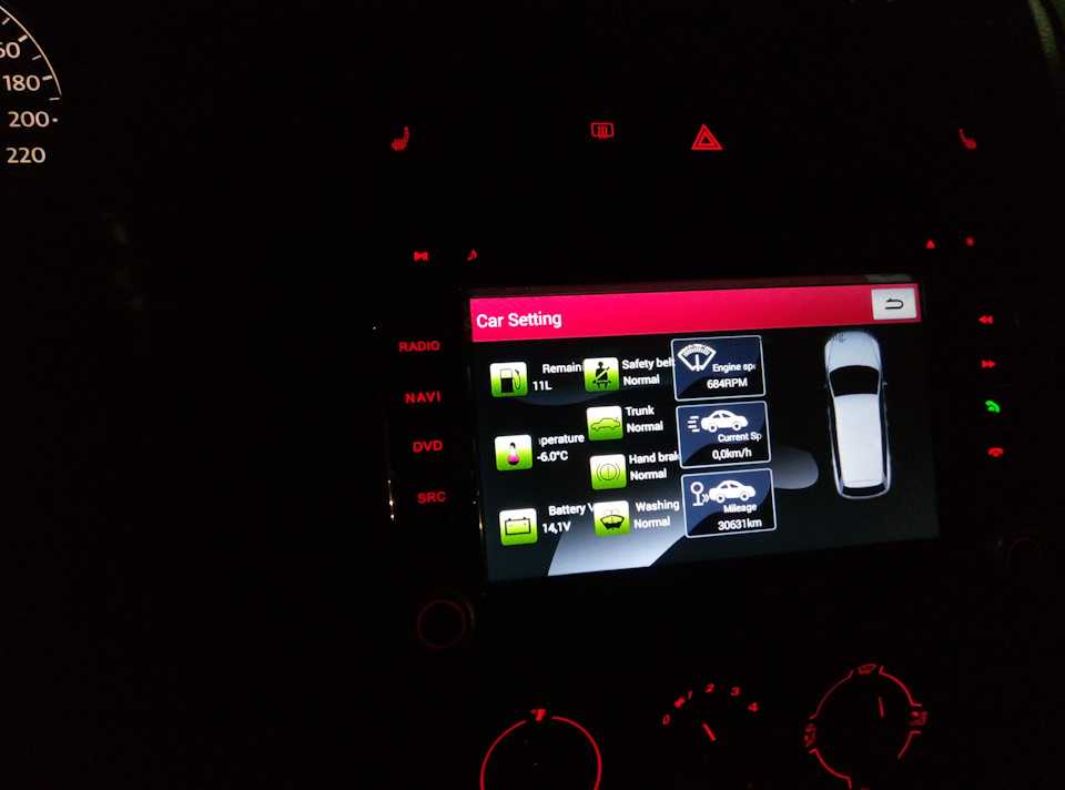 А вот так выглядит магнитола после подключения и протягивания CAN-шины.Например, выводится основная информация об автомобиле: это лишь малая часть того, что можно реализовать с использованием CAN.