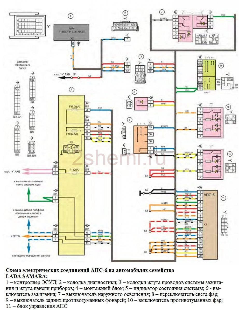 - Предохранители в схеме служат для защиты от перегрузок и короткого замыкания. Они могут быть разного типа и номинала в зависимости от подключенных компонентов.
