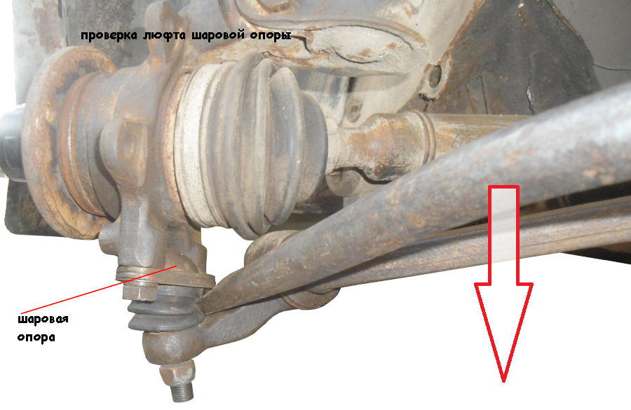 Чтобы проверить свои подозрения, можно воспользоваться монтировкой или мощной отверткой с плоским жалом. При наличии люфта шаровая опора требует замены.