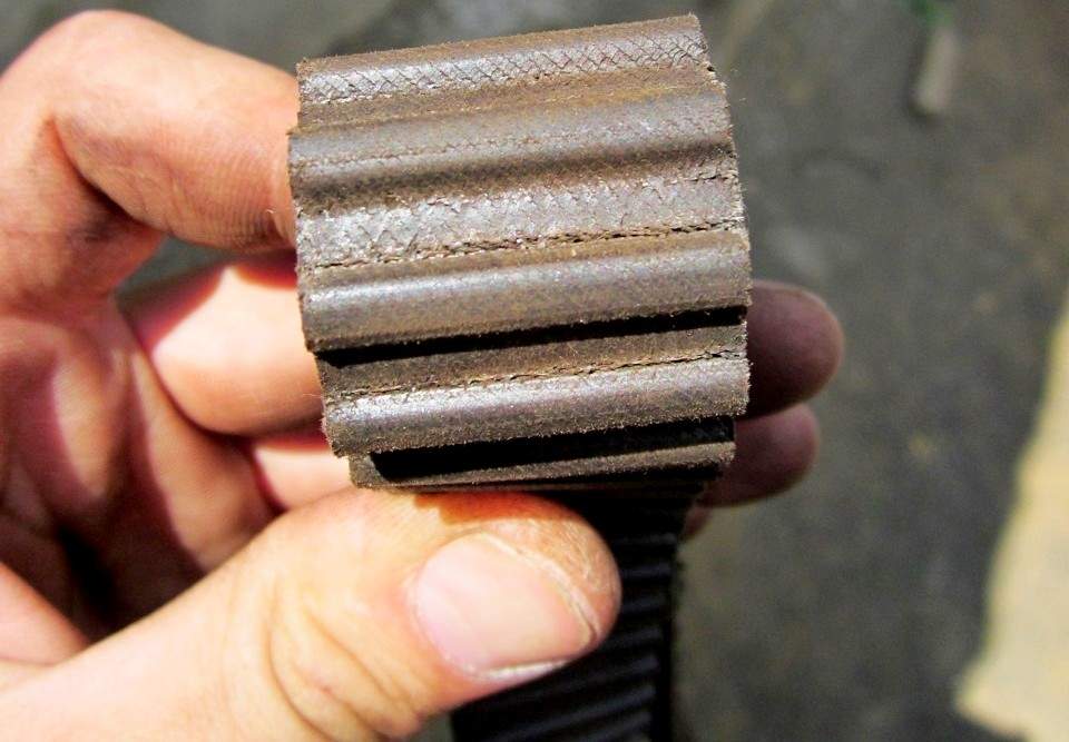 Не забываем о простейшем методе проверки состояния привода навесного оборудования — осмотре. Если ремешок усеян поперечными трещинами, на нем есть места с раскрошившимися ручейками, в ручейках много мелких камешков или он растрепался по краям, его нужно менять.