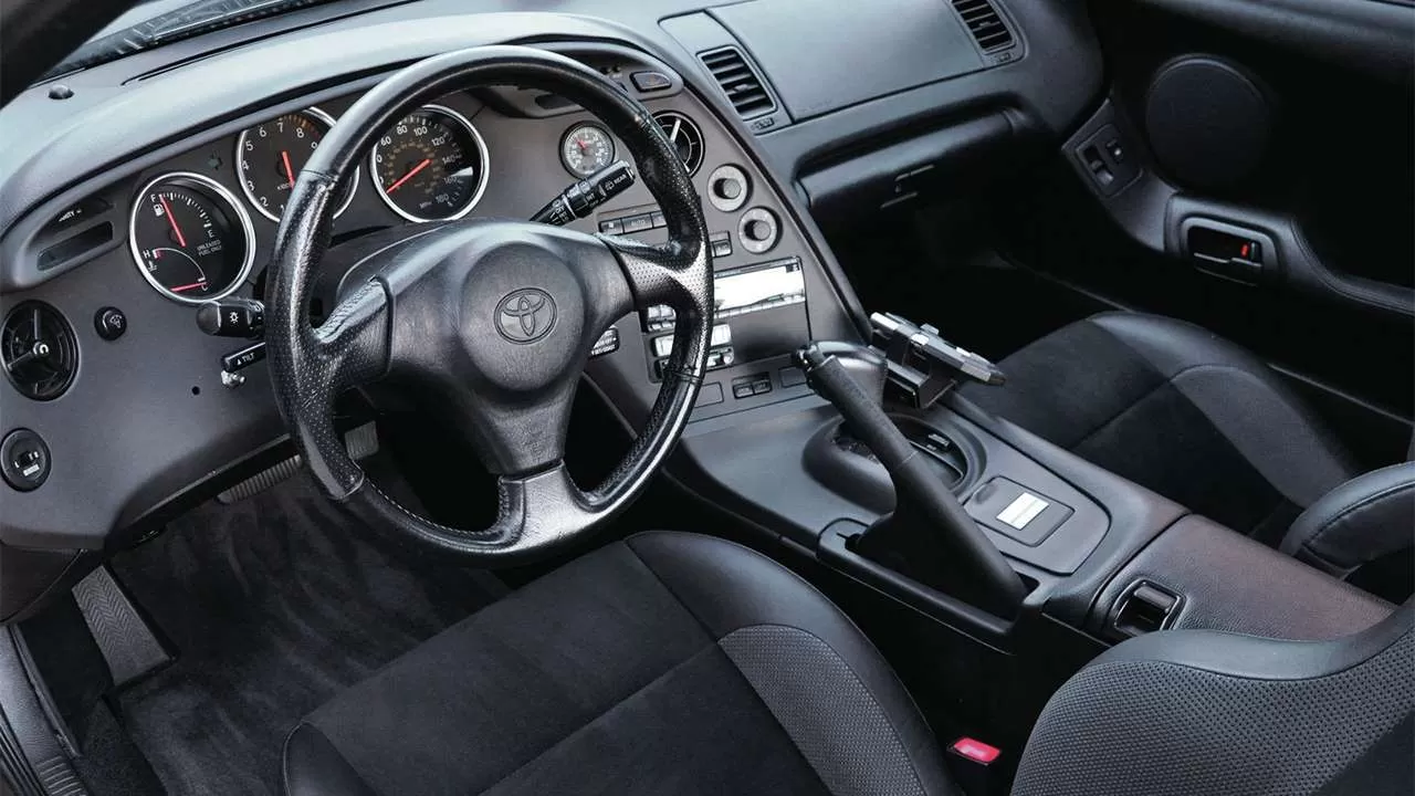 Интерьер «Супры А80» всем своим видом заявляет о ее спортивной сущности – водитель размещается в своеобразном кокпите с дугообразной передней панелью, в которую встроены три «кругляша» комбинации приборов и блоки управления аудиосистемой, «микроклиматом» и другими функциями. Убранство автомобиля отличается не только интересным дизайном, но также качественными материалами и тщательной сборкой.