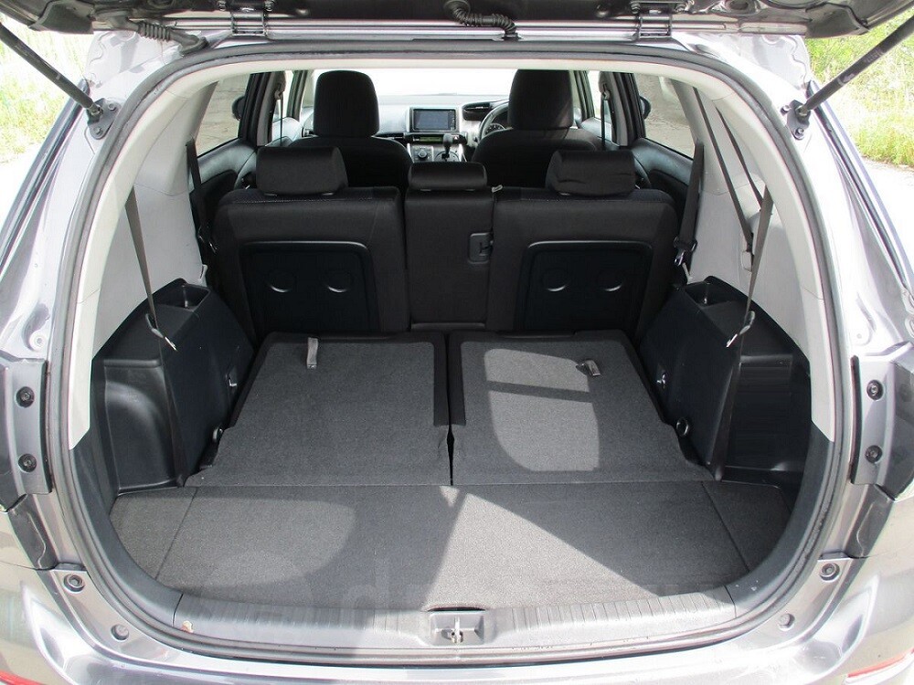 Из-за трёх рядов сидений в Toyota Wish объём багажника при поднятых спинках третьего ряда откровенно скромный и составляет всего 200 литров. Конечно, если спинки третьего ряда опустить, то объём значительно вырастит. К сожалению, точной цифры найти не удалось, но думается, что она составляет где-то в районе 1000 литров.