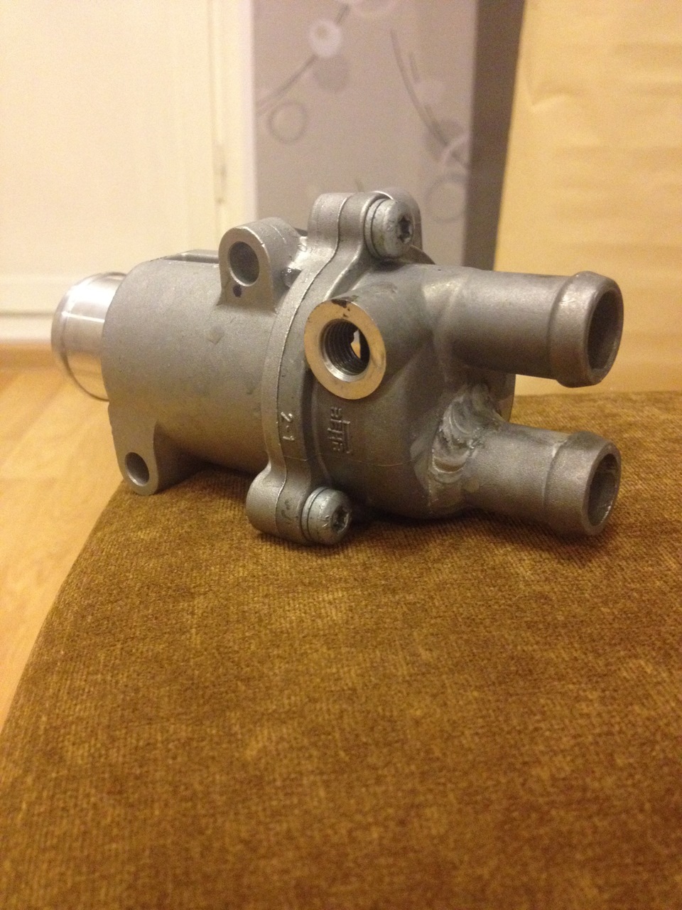 И ввариваем в него ещё один штуцер (я взял от старого термостата) получается как то так.