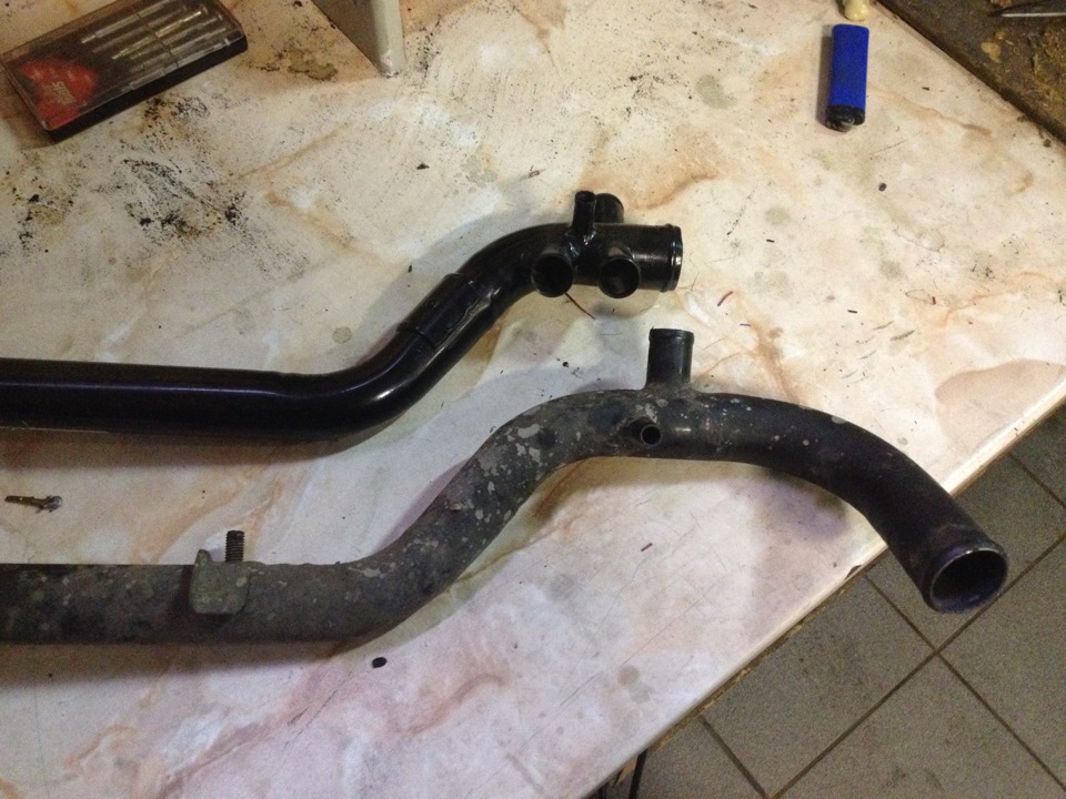 Чтобы их соединить отлично подошел кусочек патрубка кажется с волги от печки у него как раз резкий S образный изгиб.