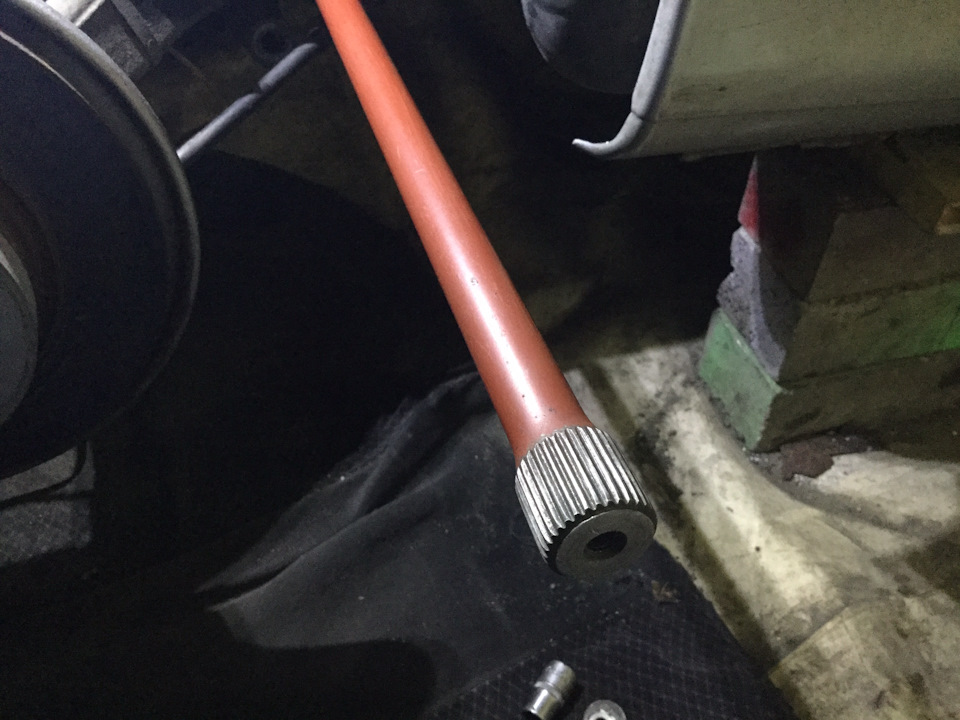 - Планка приварена к балке, поэтому большой отверткой отодвигаем её, для извлечения вала.