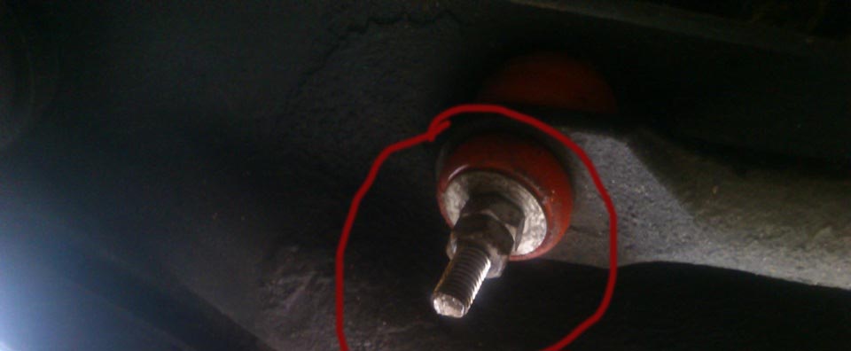 Затем устанавливаем нижнюю втулку, правильно её сориентировав и можно накручивать гайку. Если тело болта не выходит наружу втулки необходимо немного опустить домкрат, чтобы появилась резьбовая часть и, можно было наживить гайку.