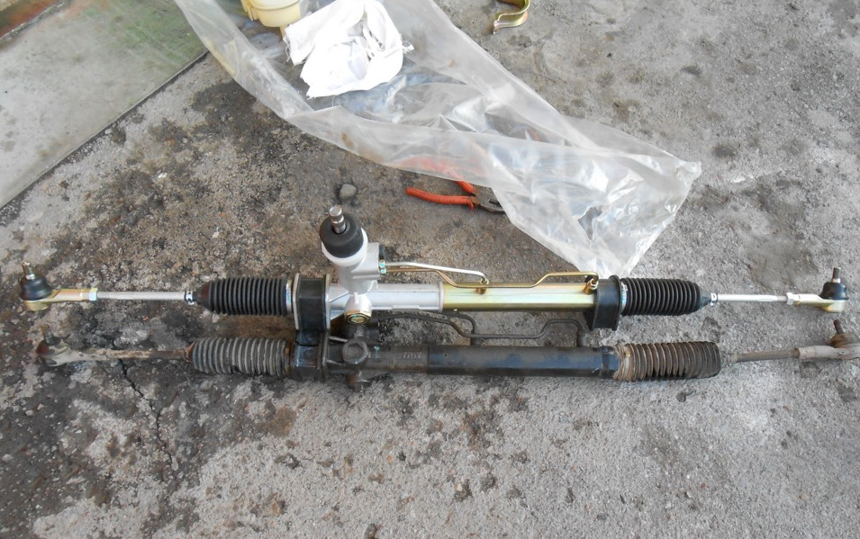 Мы также можем полностью заменить рулевую рейку на новую. Для этого нам не потребуется разбирать старый механизм, как описано пунктом выше. Мы просто снимаем старый редуктор и устанавливаем новый.