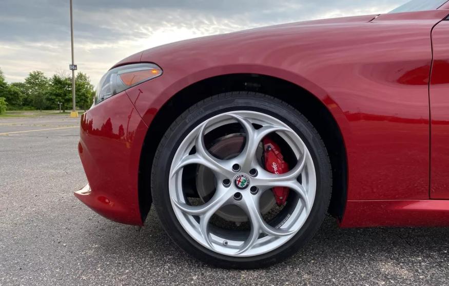 Даже с опциональной системой полного привода Giulia прекрасно входит в поворот, а модели Ti Sport стандартно поставляются с задним дифференциалом повышенного трения. У тестового автомобиля адаптивная подвеска за 995 $, которая хорошо демпфирована и никогда не бывает слишком жесткой, хотя автомобиль действительно немного дрожит на плохом дорожном покрытии. Стандартные тормоза Brembo прочные, и, несмотря на то что они чувствительны к короткому ходу педали, их легко регулировать при езде по городу.