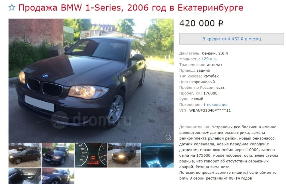 Российские дороги — еще одна проблема для BMW 1 (у меня E87). У него низкий клиренс. По трассе седан очень хорошо едет, дорогу держит хорошо. Но небольшие ямки и неровности — это уже испытание для BMW 1.