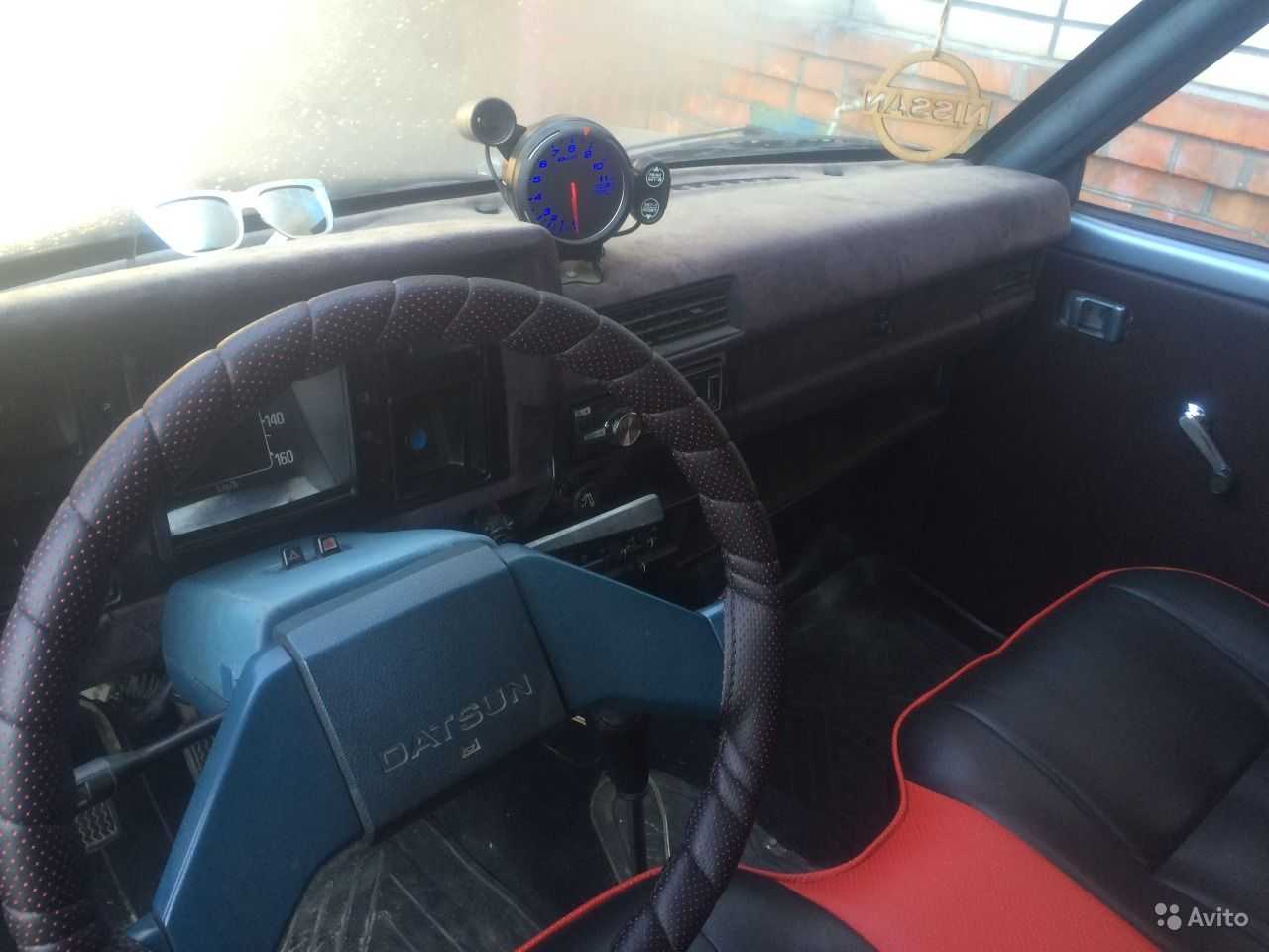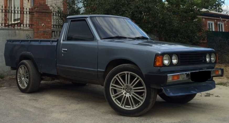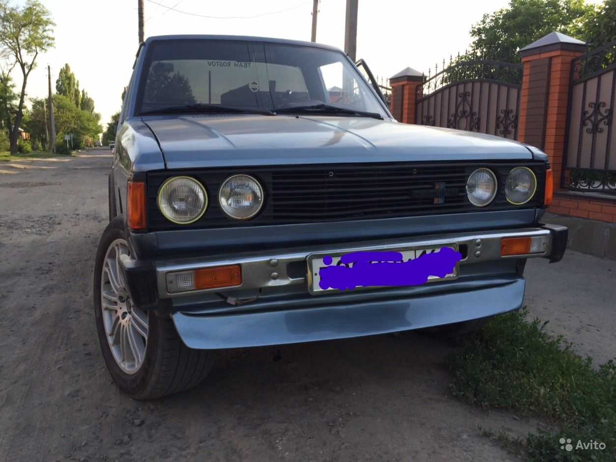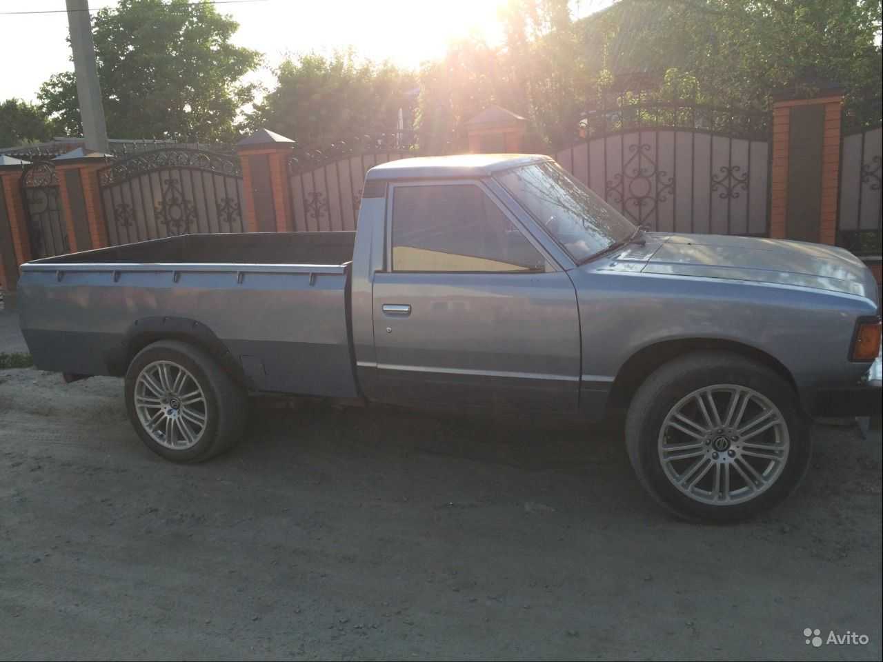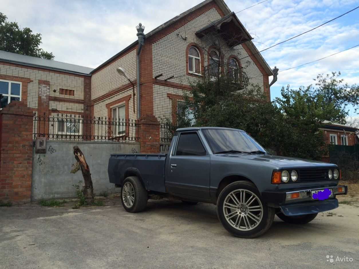 Nissan Datsun серый пикап 2 двери, 1981 г., пробег 140 000 км.2.0 MT (70 л.с.), дизель, задний привод, левый руль, три владельца по ПТС, не битый.Nissan Datsun 1981г очень редкий пикап, автомобиль доведён до ума и находится на полном ходу, сел и поехал. Садясь в эту машину, нельзя оставить прохожего без внимания. К машине прилагаю много запчастей: коробка, головка, блок, салон, ТНВД, проводка, и ещё куча запчастей. С документами все в порядке. Диски итальянские разноширокие R19 зад 275 пер 255 от мерседеса а также заказывал проставки к этим дискам пер 60мм зад 20мм , банка MG-RACE, капот обклеил броне пленкой. Кабина обклеила шумоизоляцией на полу 6мм и на дверях 2мм, все конечно не смогу написать ну вроде все главное описал.