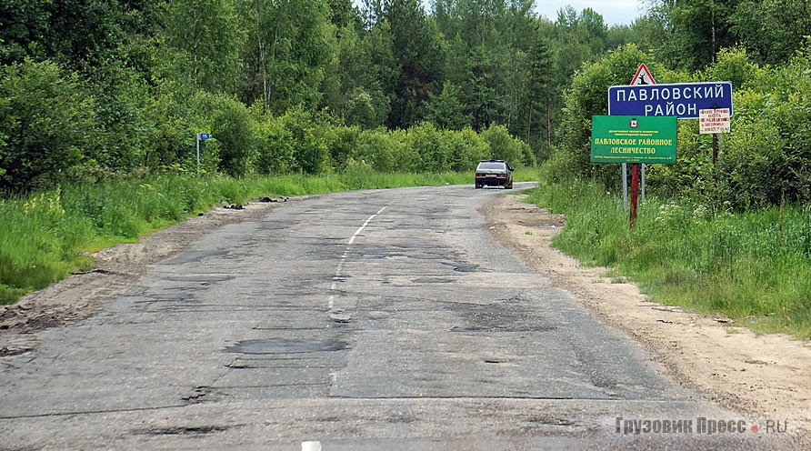 Съехав с трассы M7 в населённом пункте Гороховец, вы совершенно не меняя темпа движения мчитесь до Юрово, а вот потом… Потом советую быть начеку, потому что очень скоро будет граница между Владимирской и Нижегородской областями, попутно объединенная с границей между дорогой и бездорожъем. Причём никакого перехода нет, просто ровный асфальт в одно мгновение сменяется разбросанными в шахматном порядке ямами. Кто успел затормозить, тот молодец, остальным сочувствую. Усиливает неприятное ощущение тот факт, что поездка проходила 23–24 ИЮНЯ!!! Похоже на сей раз, спихнуть всё на ежегодную весеннюю разруху не получится при всём желании.
