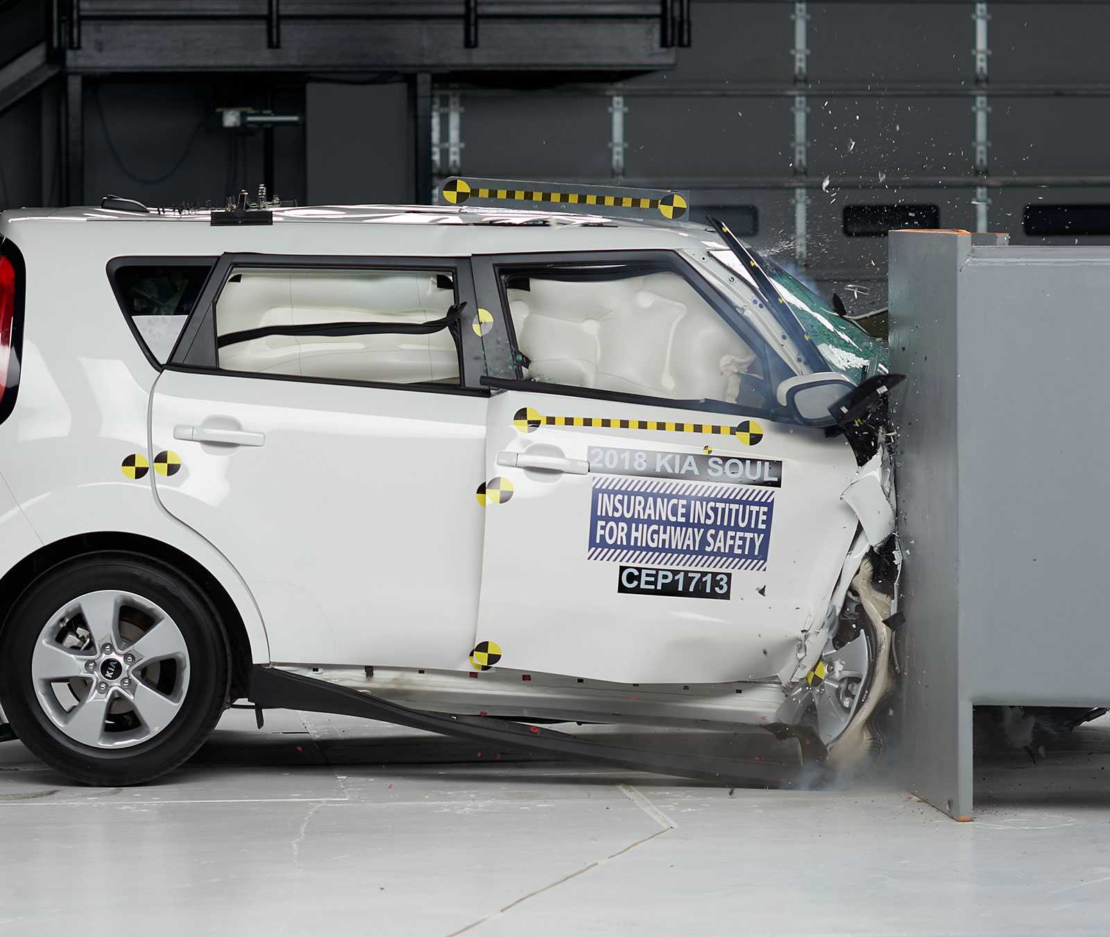 Two passenger-side small overlap frontal tests of the Soul were conducted, one by the Institute of a 2018 model and the other by Hyundai/Kia of a 2017 model as part of . Ratings are based on both tests.