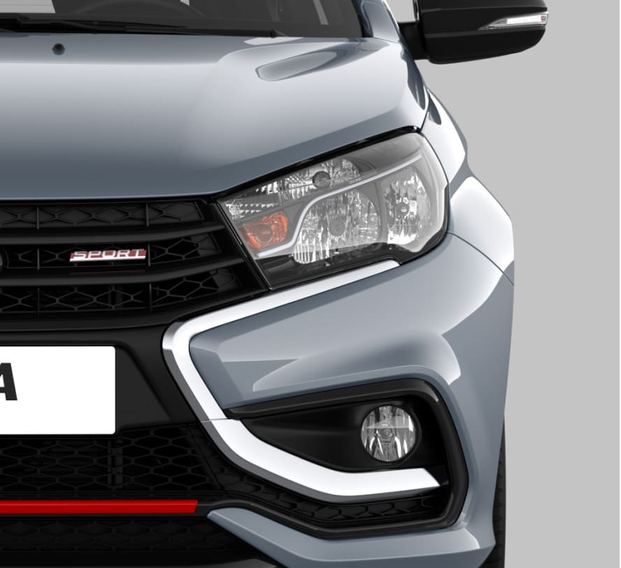 В отличие от предыдущих моделей, у Vesta Sport отобрали 20 мм клиренса. Он составляет 162 мм. Базовая комплектация оснащена задним спойлером, оригинальным передним бампером, а также расширенными колесными арками, декоративными накладками на порогах.