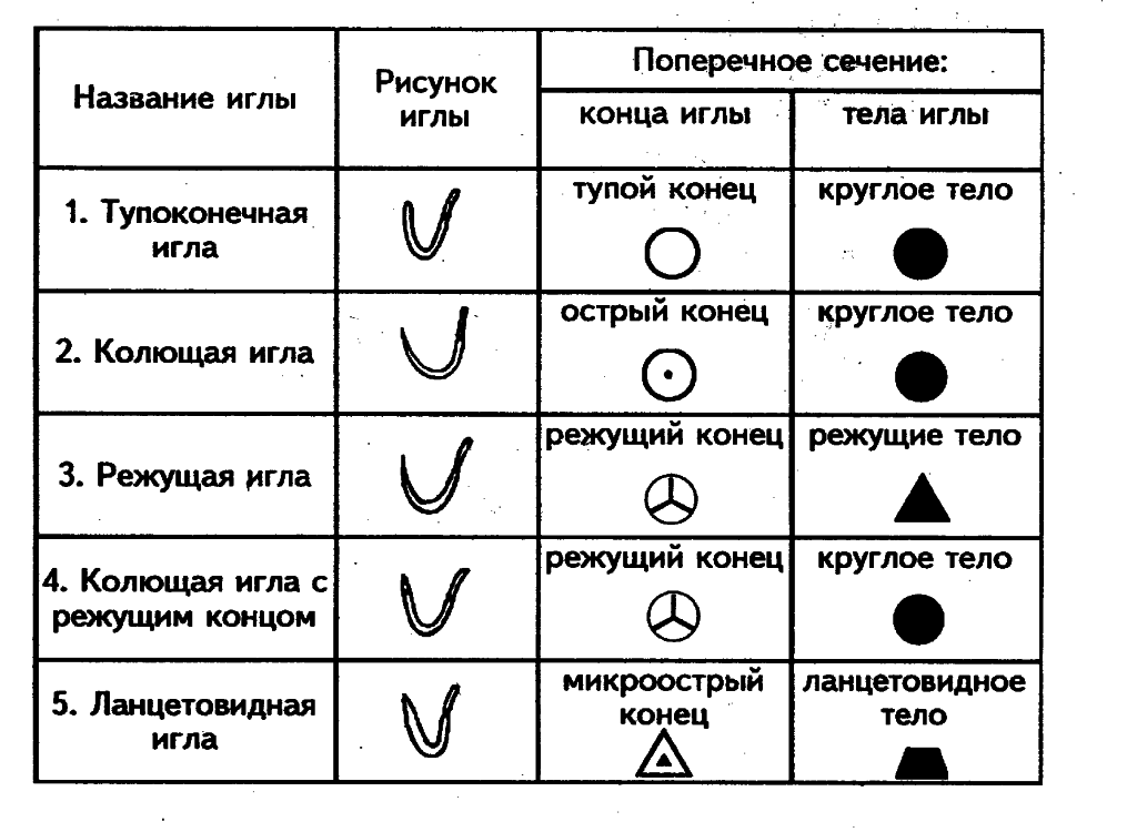 - плоскую/кинжальную. Конец острый, в поперечном сечении тела иглы можно визуализировать окружность;
