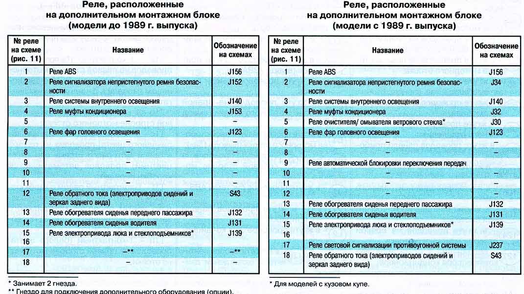- (5 А) — Зеркала заднего вида с электроприводом, стеклоочиститель заднего стекла (с 1990 года)