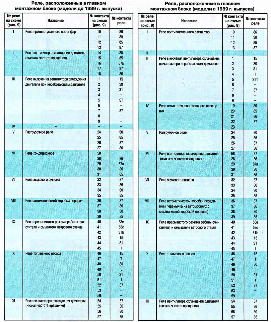 - Реле кондиционера (до 1990 года) Реле вентилятора системы охлаждения двигателя (высокая скорость) (с 1990 года)