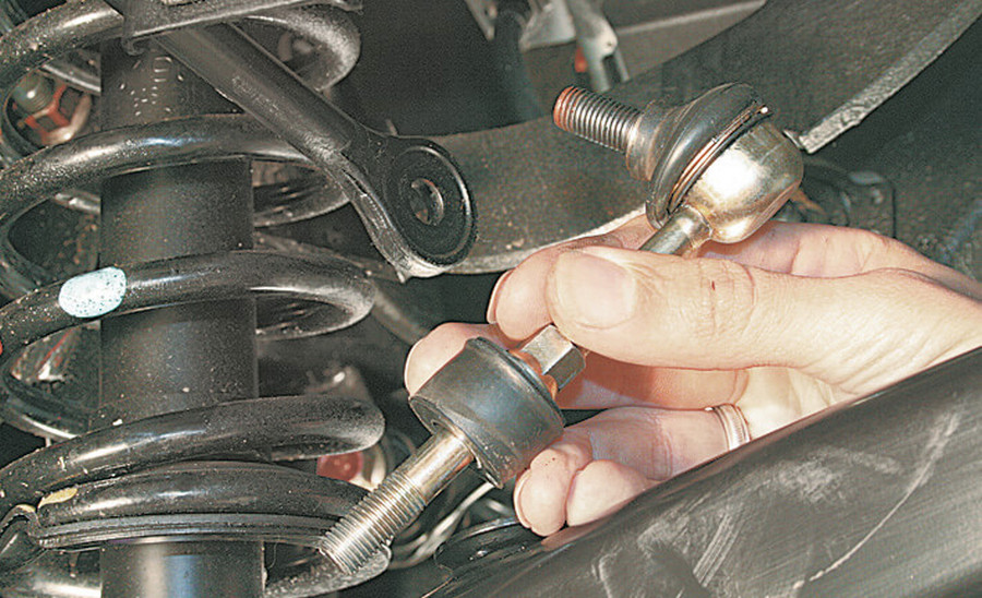 И принимаемся за дело. В первую очередь можно заняться стойкой стабилизатора. Откручиваем гайку стойки (фото 3). Больше информации по стойкам стабилизатора Вы сможете найти вот в этой статье.