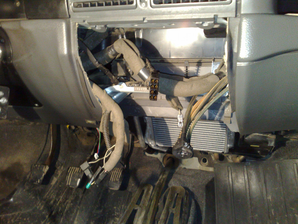 Вот мы и добрались до отопителя в сборе с радиатором и испарителем, отсоединим и его: