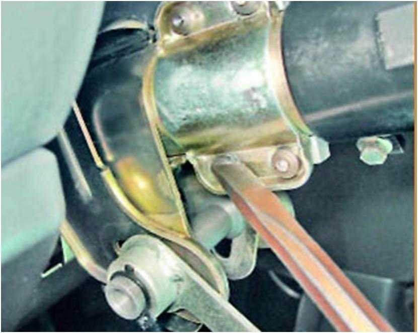 Если рассматривать более поздние модели ВАЗ, то у них замок зажигания крепится в правой части рулевой колонки с помощью скобы, зажатой крепежными болтами. Самое сложное в демонтаже замка – это открутить болты, которые сделаны специально таким способом, чтобы усложнить задачу снятия замка, тем самым уменьшая вероятность взлома. Для преодоления этой сложности рекомендуется использовать зубило и плоскогубцы. С помощью зубила аккуратно ослабляем стяжку болтов, стараясь при этом не повредить их головки.