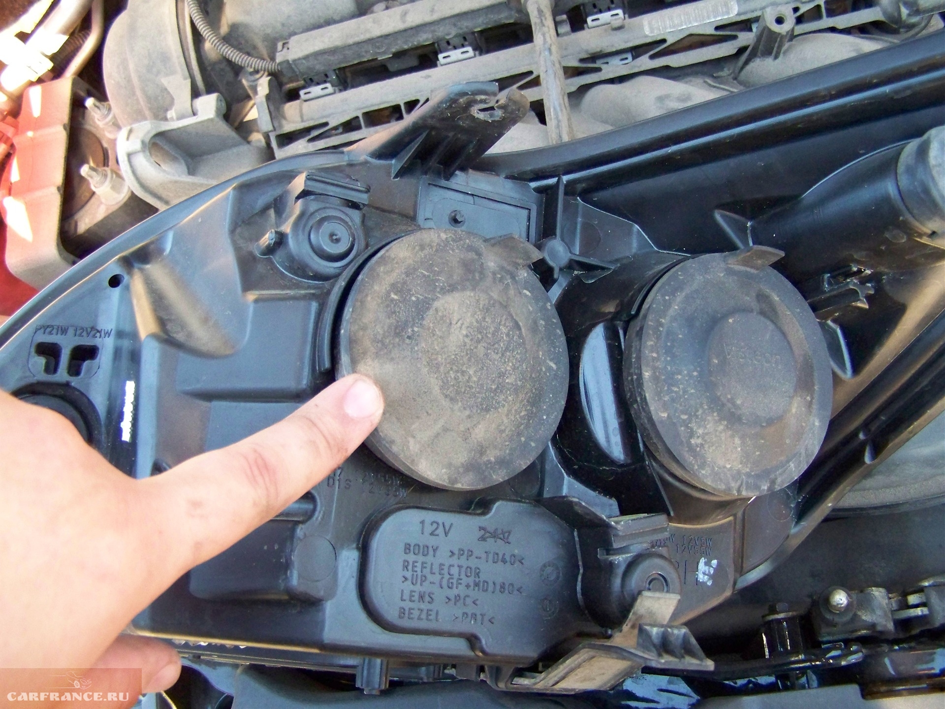 Теперь остается лишь снять пластиковый пыльник фары, которые держится на 4 защелках