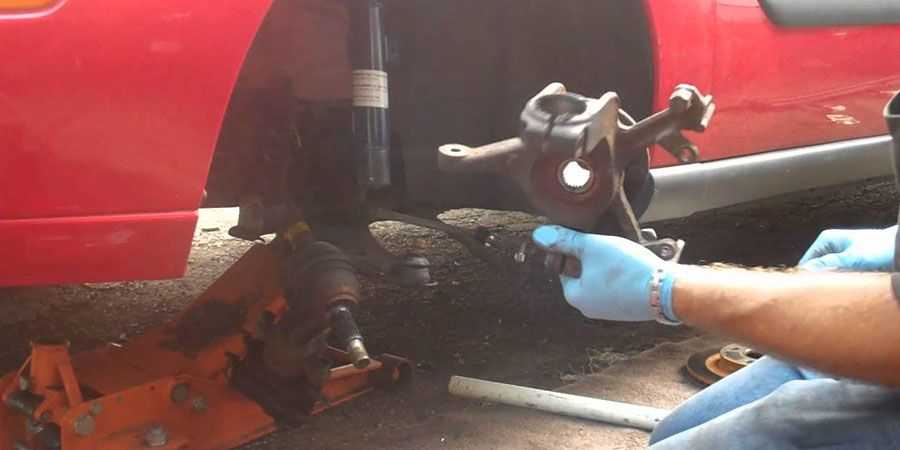 - Далее снять болт ступицы и освободить поворотный кулак от ШРУСа.