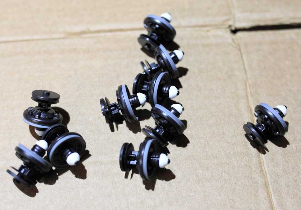 Скорее всего, большинство пистонов будут повреждены. Поэтому для обратной установки карты на место заранее приобретают новые клипсы.