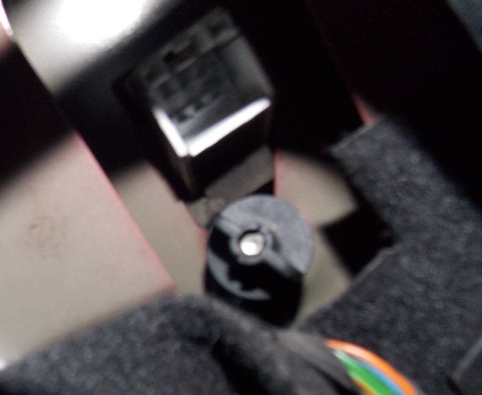 Потом садимся в багажник и изнутри находим дырку между мягкой обшивкой и пластиковой панелью. Внутри, возле проводки, находится гайка-барашек, которую также откручиваем.Можно попутно отключить и проводку, чтоб случайно ничего не повредить, но я не отключал (несколько попыток не увенчались успехом и я сдался).