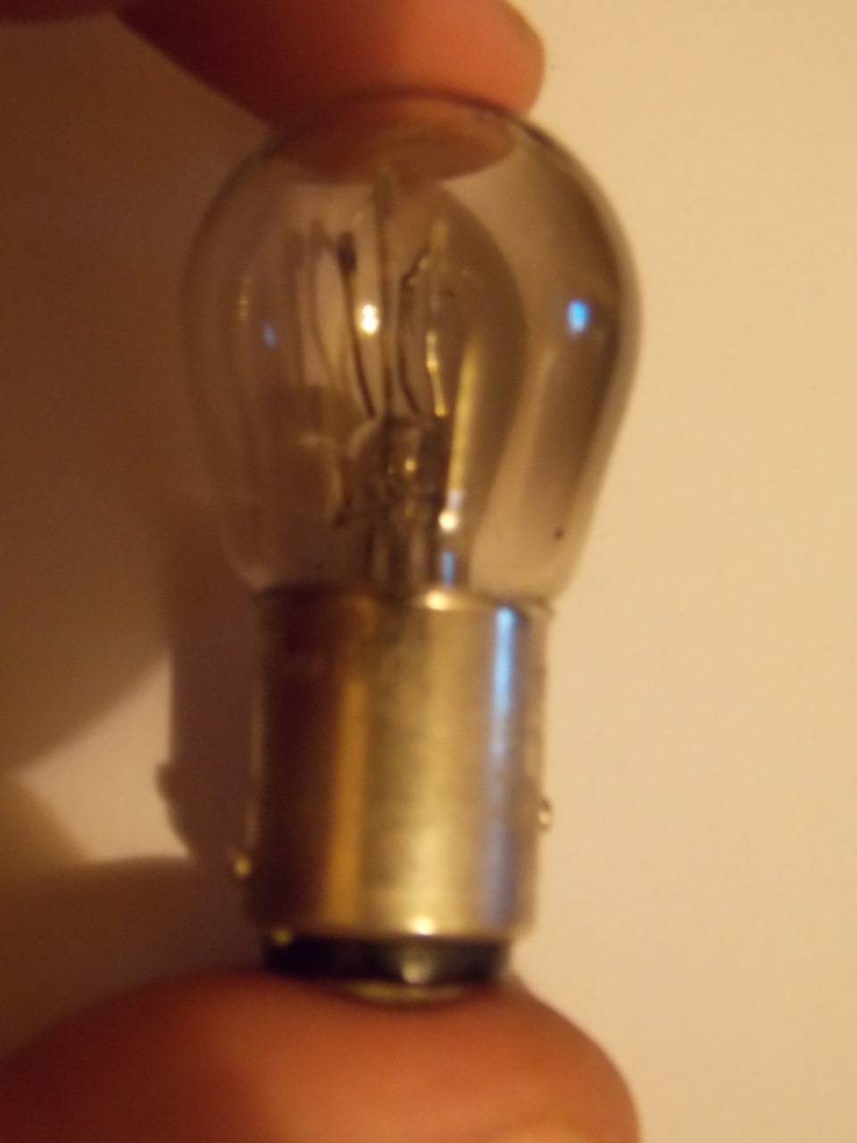 Первернул лампу, проверил, работает правильно. При нажатии на тормоз накаляется нужная нить и лампа светит намного ярче, чем при включенных габаритах.