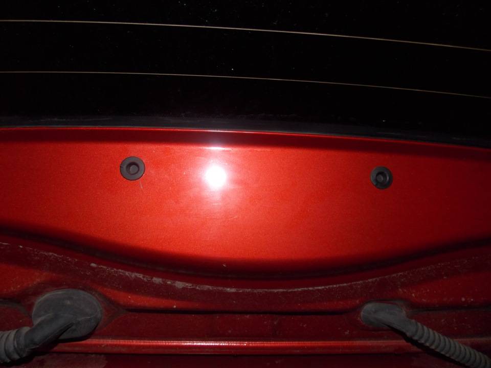 Откройте крышку багажника. Над стеклом располагаются 2 резиновые заглушки. Снимите их. Для этого не потребуется много усилий, заглушки вытаскиваются руками, если слегка потяните их за край