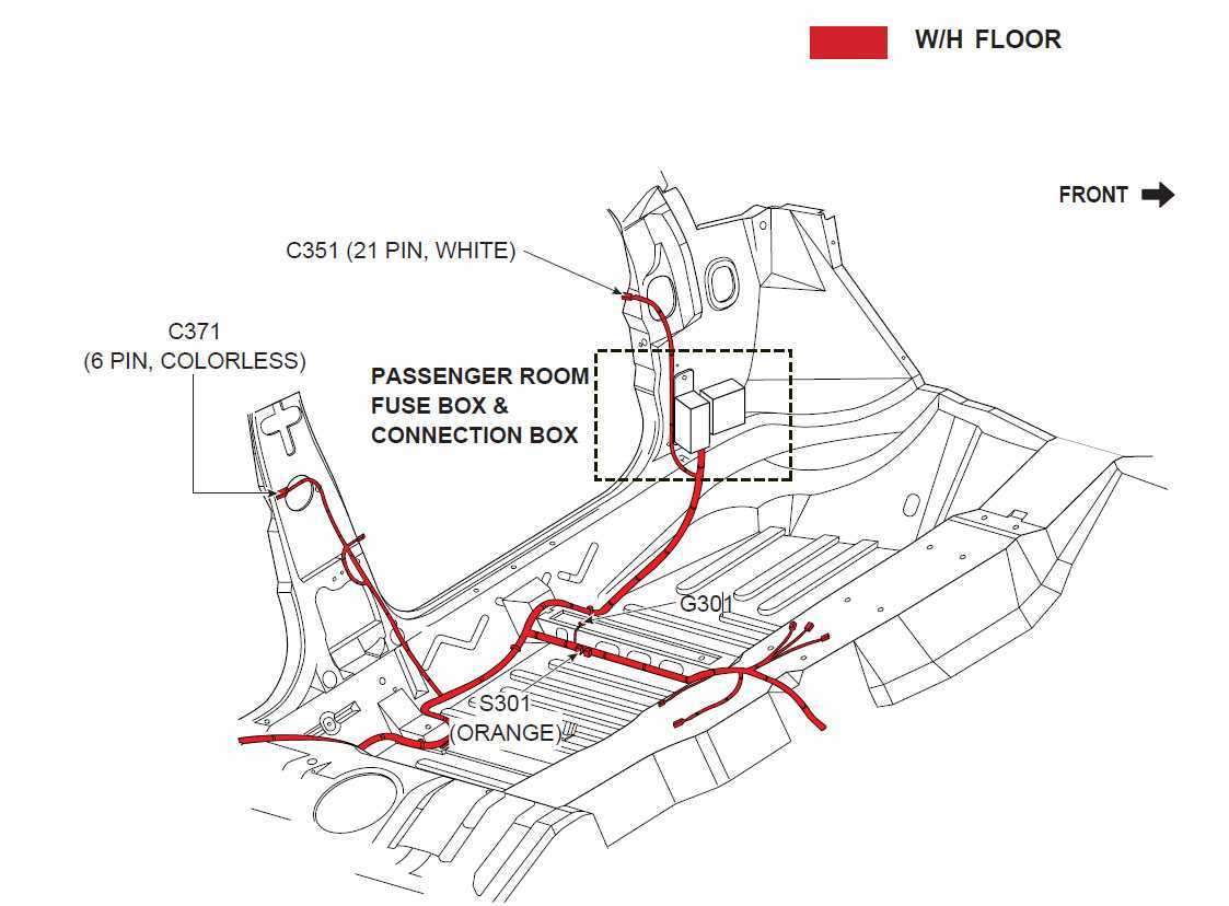 Такая схема несет другой тип информации: трассировка кабельных кос и приблизительное расположение разъемов на кузове.