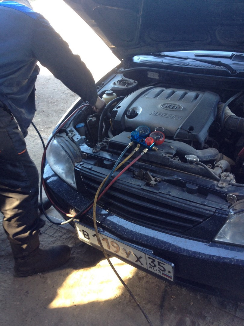 Леонид предложил мне 2 варианта:1) Заправить краской, искать протечку, ремонтироваться и только потом заправлять фреон.2) Заправляться фреоном с добавление краски и ездить сколько получится, а потом ремонтировать.Второй вариант поэкономичнее…но хотя как сказать. Хоть и протечка маленькая, но нет никакой гарантии, что весь фреон за неделю не выйдет и 1400р. на ветер. Поэтому немного подумав, я выбрал более затратный первый вариант, но зато буду потом спокоен.