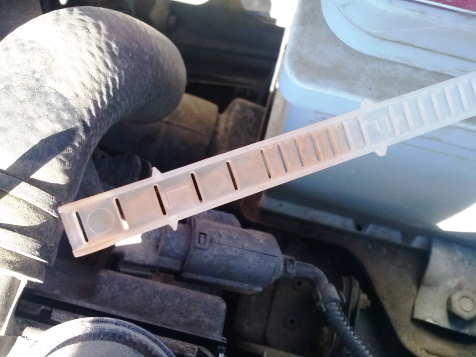 Закрываем сливной вентиль, ставим патрубок на место и начинаем заливать дистиллированную воду в радиатор. Как только пойдет вода, через снятый шланг идущий на дроссельный узел, ставим шланг на место. Продолжаем наполнять радиатор до верха. После чего заливаем в расширительный бак, до отметки F, расположенной на специальном пластиковом щупе.