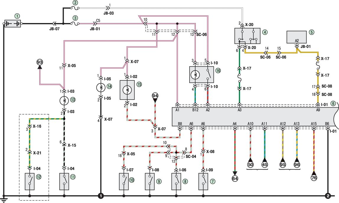 | 1 | Группа 1 потребителей, получающих питание при включенном зажигании (20 А) |
