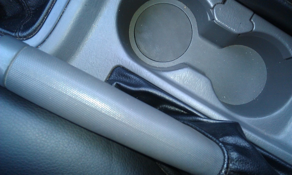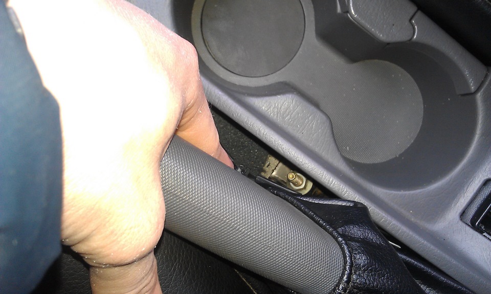 И акрутите гайку. Можно прямо до упора. Все. Вынимаете ключ и натягиваете кожзам обратно на ручку ручника. Теперь ваш ручник подтянут.Есть еще один вариант:Нужно будет запастись ключом на 10, отверткой и плоским лезвием. Поднимаете рычаг ручника до упора вверх. Следите за щелчками — должно прозвучать 5-7 щелчков. Если количество щечков больше или меньше, то смело снимайте облицовку тоннеля пола. Далее снимите заглушки винтов переднего крепления облицовки. Их по два с каждой стороны, и извлеките заглушку винта облицовки в подстаканнике. Выверните винт крепления. Затем снимите коврик ниши для мелких вещей и отверните там два болтика крепления облицовки. После этого выверните ручку переключения передач, сняв с рычагов привода ручника и переключения передач декоративные кожухи. Следом нужно будет снять облицовку тоннеля пола. Вращением регулировочной гайки наконечника добейтесь нужного количества раз. Если вращение гайки ничего не дает, то следует прокачать тормозную систему, сняв задние тормоза.